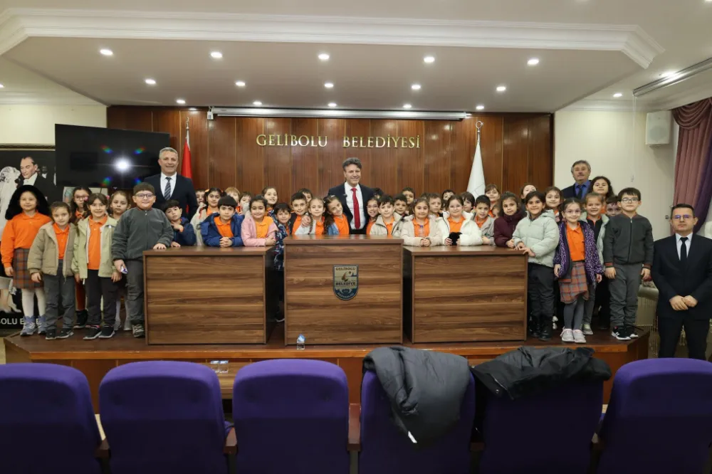 Eğitim ve çocuk odaklı projeleriyle dikkat çeken Gelibolu Belediye Başkanı Dr. Ali Kamil Soyuak, bu kez makam kapılarını geleceğin teminatı olan çocuklara açtı. 75. Yıl Cumhuriyet İlkokulu’nun 2. sınıf öğrencileri, öğretmenleri eşliğinde gerçekleştirdikleri ziyarette belediyenin işleyişini yerinde görme fırsatı buldu.