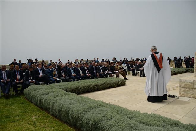 Burada başlangıç konuşması, saygı duruşu ve okunan duaların ardından İngiliz Anıtı´na İngiltere adına Birleşik Krallık Büyükelçiliği Elçi Müsteşar ve Misyon Şefi Yardımcısı Jennifer Anderson ve Türkiye Cumhuriyeti adına Kültür ve Turizm Bakanı Mehmet Nuri Ersoy ile diğer ülkelerin büyükelçileri tarafından çelenk bırakıldı. İngiliz ve Fransız anıtlarındaki törenlerde İstiklal Marşı´nı üniformalı yabancı bir kadın asker okudu.
