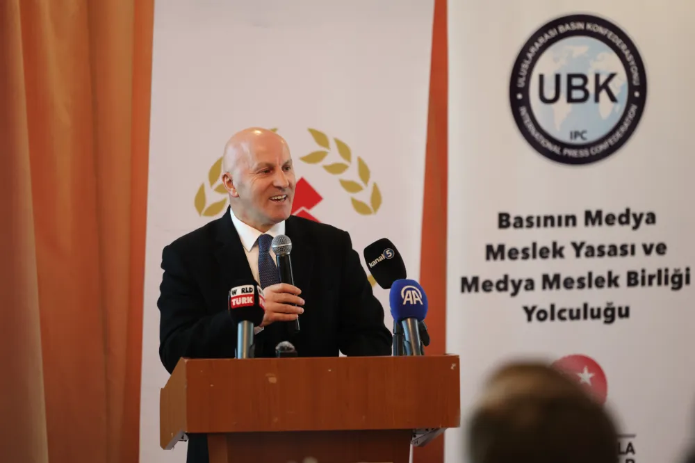 Basın ve medyaya en fazla ihtiyaç duyulan zamanlardan geçildiğine dikkat çeken İçişleri Bakan Yardımcısı Bülent Turan konuşmasını şu ifadeler ile sürdürdü : "Dünya büyük bir kırılmanın eşiğinde. 3 Ocakta bir Devlet başka bir Devlet Başkanını yatağından aldı götürdü. 2 Ocakta sorsak kimsenin aklına gelmezdi. Şu an Basra Körfezinde bir donanma var. İran'a müdahale olur mu olmaz mı bu tartışılıyor. 40 yıldır PKK ya destek olanlar kapılarını, musluklarını kapattı. Suriye, Irak belki yarım yüzyıldır ilk kez kendi dengesini bulmaya çalışıyor. Filistin'de hala masum insanlar öldürülüyor. Ateşkes ihlalleri, İsrail'in utanmazlığı, yüzsüzlüğü, hukuk tanımazlığı nedeniyle sıradan bir hale geldi. 24 Şubatta Rusya Ukrayna savaşı 4 ncü yılına giriyor. Sorsak 20 günde biter deniyordu. Tüm bu gelişmelerde masadayız. Ya denge unsuru, ya güvenilir bir ara bulucuyuz. Bugünlere kolay gelinmedi. Birilerinin dediği gibi içe hapis olsaydık, küçük dünyamızdan cıkmasaydık tüm bu masaların içinde oyuncu değil oynanan olurduk. Çocukluğumuzda Türkiye Yunanistan ile kıyaslanırdı. Farkında mısınız ama siyasi gündemde neredeyse Yunanistan'ı unuttuk. Üretimimizde, ihracatımızda, dünyadaki yerimizde, savunma sanayimizde asla kıyas yok. İngiltere ile Almanya ile Rusya ile ABD ile konuşuluyor, kıyaslanıyoruz. Elbette sorunlarımız var ama altından kalkacak gücümüz de var. Tecrübemiz, güçlü liderligimiz de var. Bakın geçen hafta 6 Şubat asrın felaketi büyük depremin yıldönümü idi. Altından kalkilmaz dendi. Battık dendi. Bulgaristan'ın yüzölçümü kadar bir alandan, 11 ilden bahsediyorum. 150 milyar dolar maliyetten, 455 binden fazla konut inşaasından bahsediyorum. Peki bunları neden anlatıyorum? Çünkü bunları söylemek, yazmak da cesaret istiyor. Özgür Basın sadece iktidarı eleştiren Basın değildir. Yapılan iyi işleri erdemlice anlatmak, iktidarı sorgularken, muhalefeti de sorgulamak, yolsuzluğu başarısızlığı sadece iktidarda değil muhalefette de aramak cesaret işidir. Yoksa hırsız her yerde hırsız, huysuz her yerde huysuzdur. Bunları yapay zeka yapamaz, insan yapar. İşte o yüzden bu mesleği hakkıyla yapan insanlara ihtiyaç var".